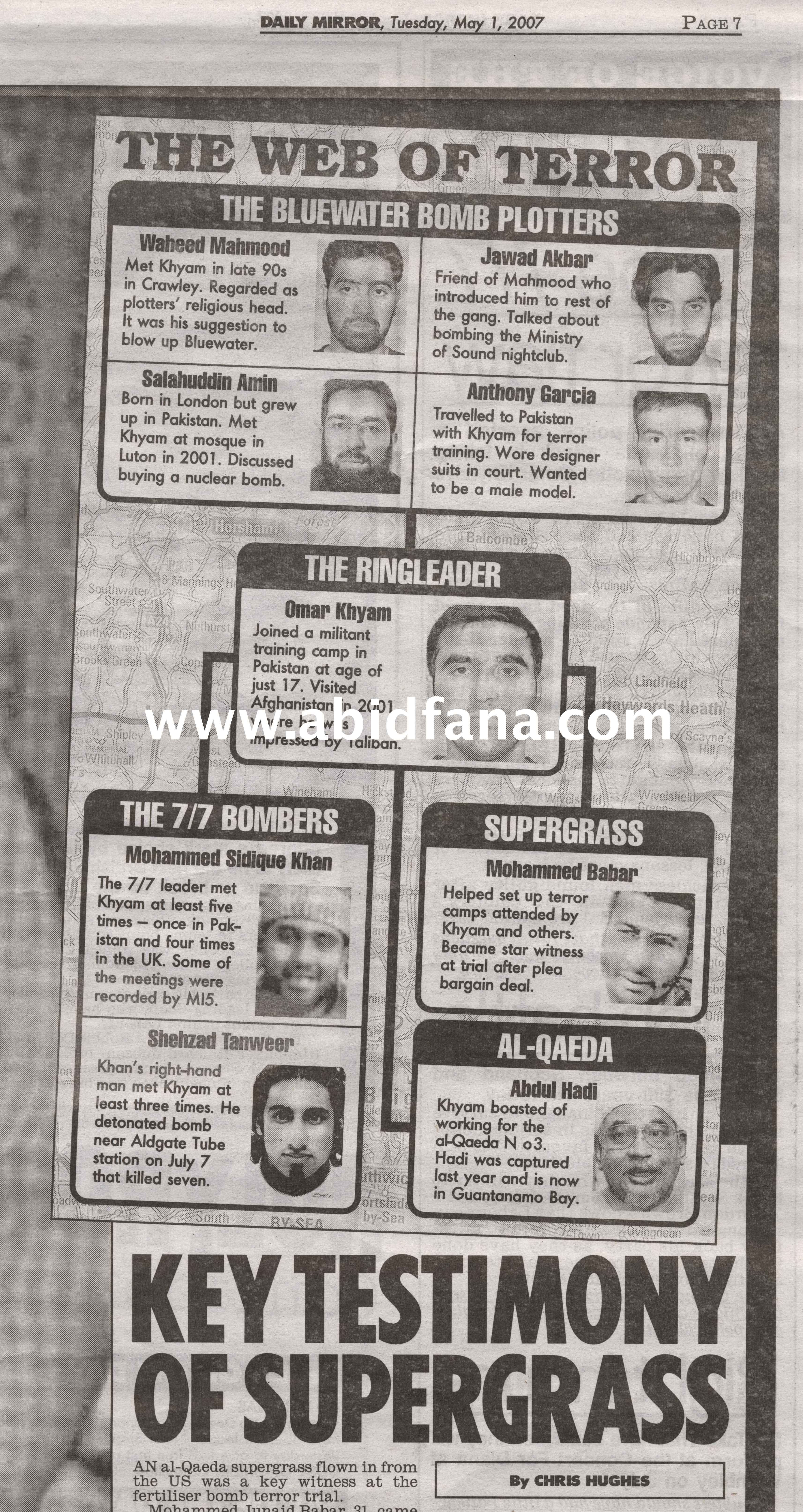 Tuan Guru Dato’ Seri Abdul Hadi Awang sendiri pernah dituduh menjadi orang ketiga rangkaian al-Qaedah. Tuduhan itu dibuat selepas penangkapan seorang yang dituduh menjadi dalang peristiwa 7/7 di London pada tahun 2005 bernama Omar Khyam. Abdul Hadi Awang dikatakan menjadi orang ketiga al-Qaeda dan sedang berada di pusat tahanan Guantanamo Bay. Berita itu, walaupun sebenarnya merupakan kesilapan wartawan suratkhabar Daily Mirror di United Kingdom, telah menyebabkan Abdul Hadi Awang dikaji secara teliti oleh barisan peguam British non-Muslim. Mereka mendapati Abdul Hadi Awang sebagai insan yang penuh berintegriti, menolak keganasan dan berperibadi mulia. Kesannya, beliau menang kes saman dengan mudah di Mahkamah British. Daily Mirror memohon maaf atas kesilapan tersebut, dan mengakui akan integriti Abdul Hadi Awang.