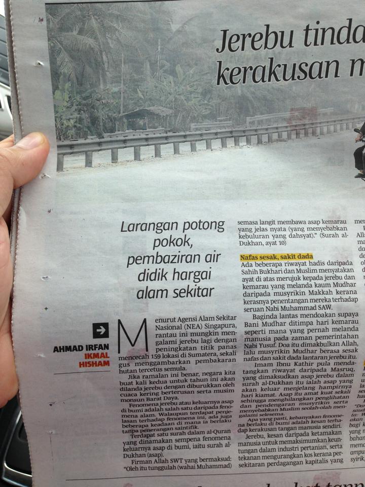 Jerebu: TIndak Balas Kerakusan Manusia. Article in Berita Harian 6 August 2013.